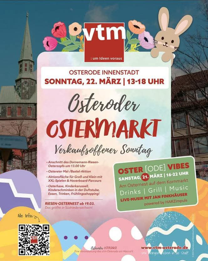 Am 22. März findet in der Osteroder Innenstadt der Osteroder Ostermarkt statt – und wir sind natürlich mit dabei!